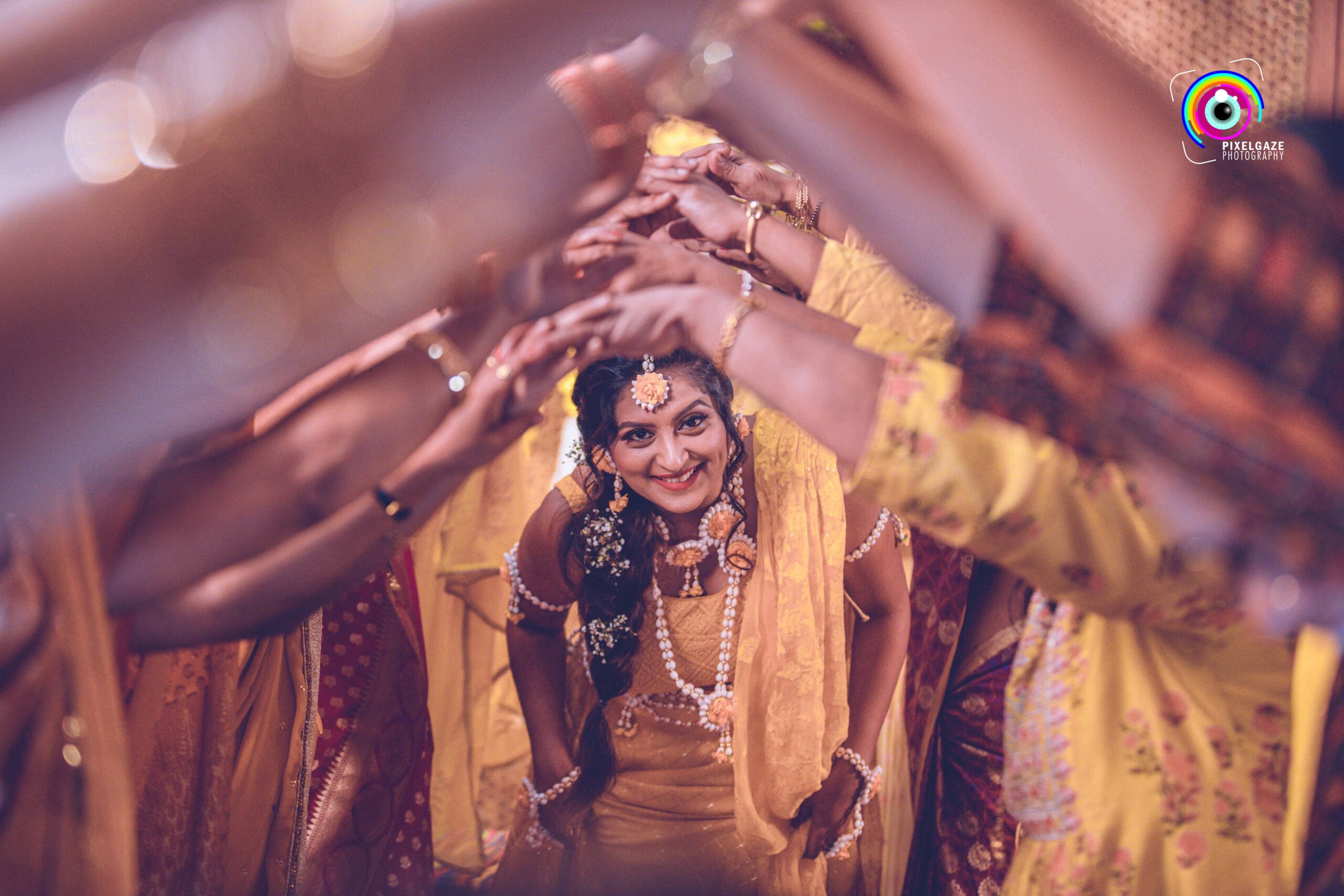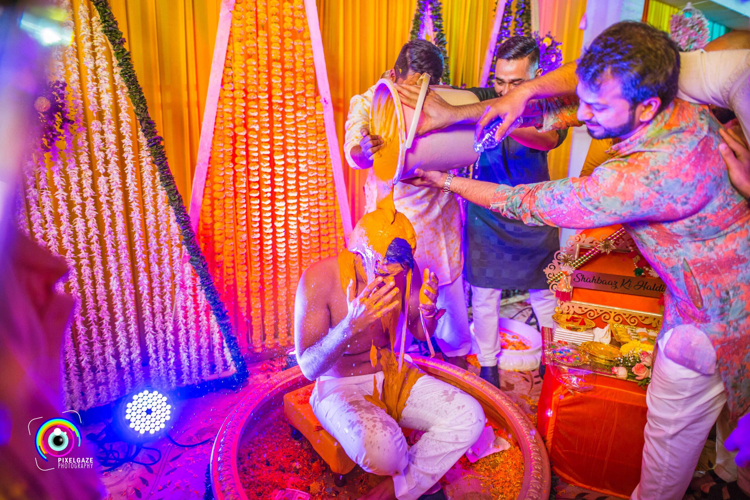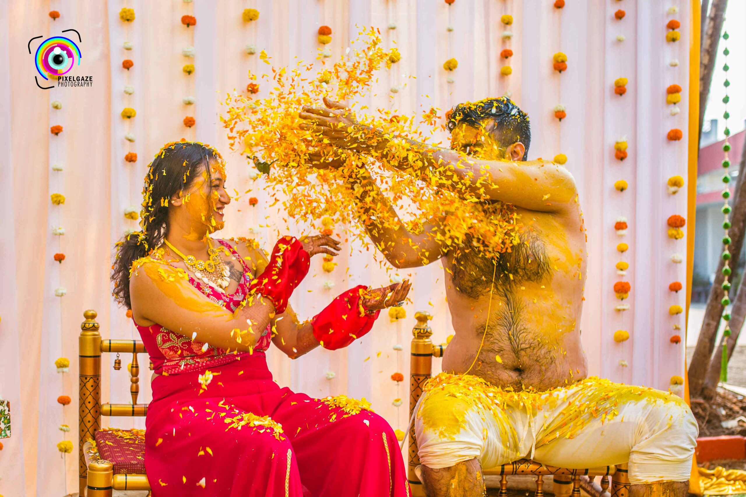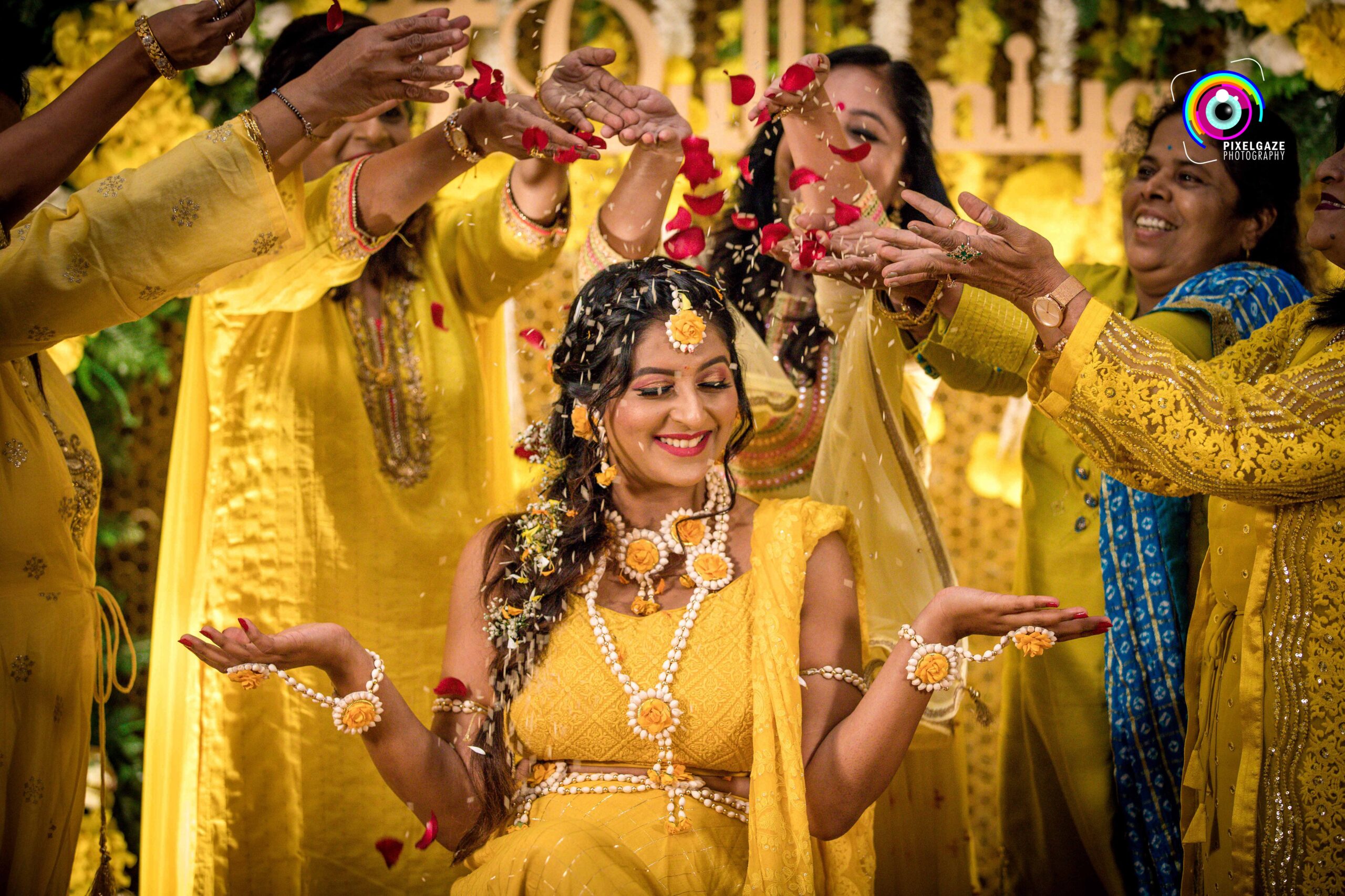 The Haldi ceremony symbolizes new beginnings, and to frame the vibrant hues of yellow, we immerse ourselves in the heart of the celebration to preserve its pristine essence.