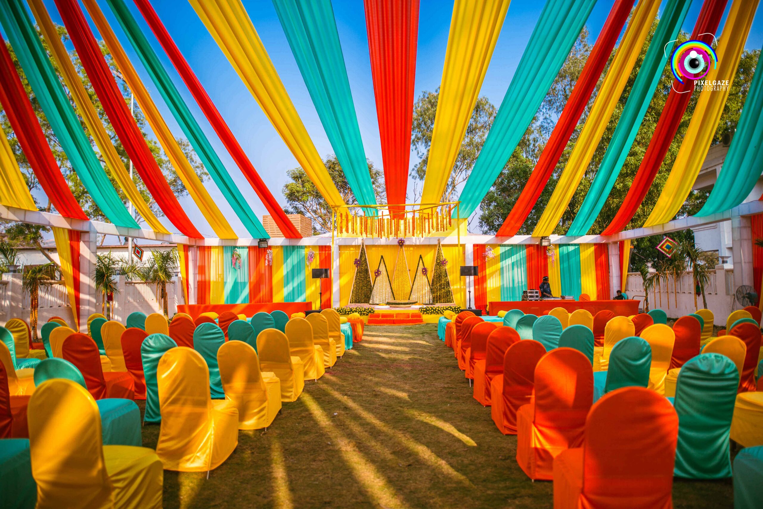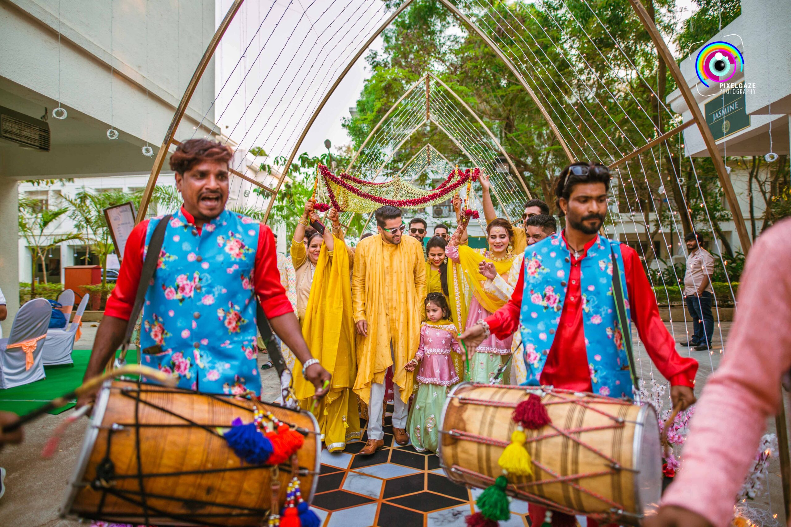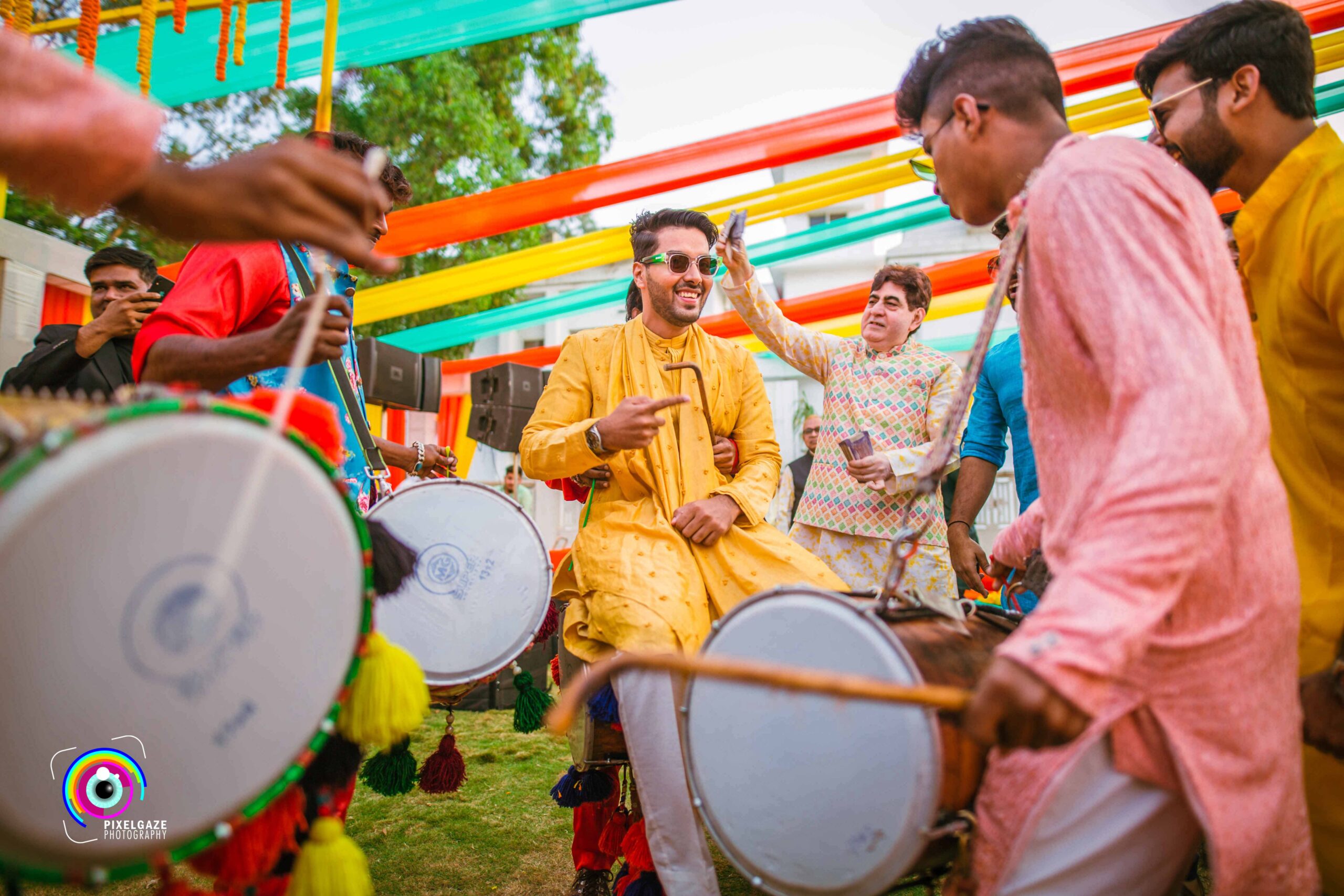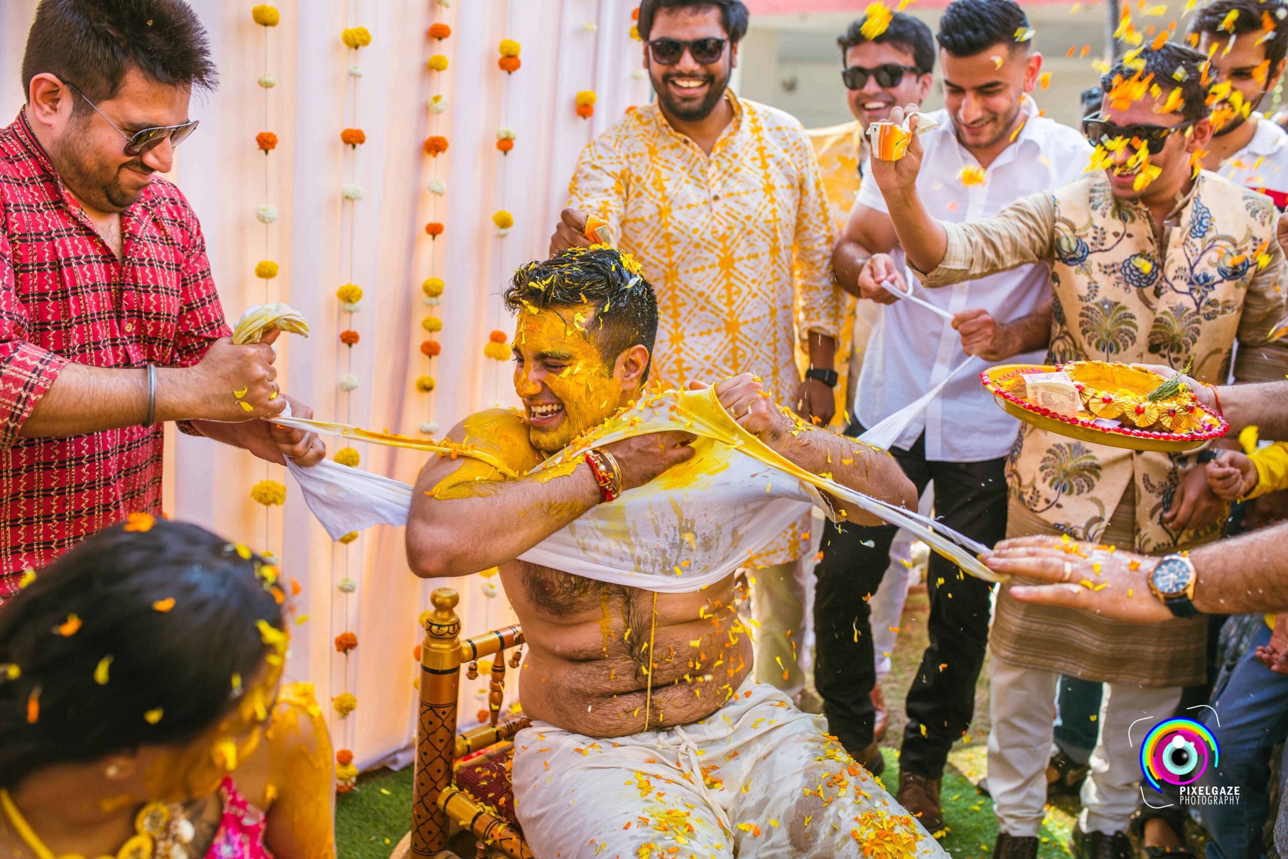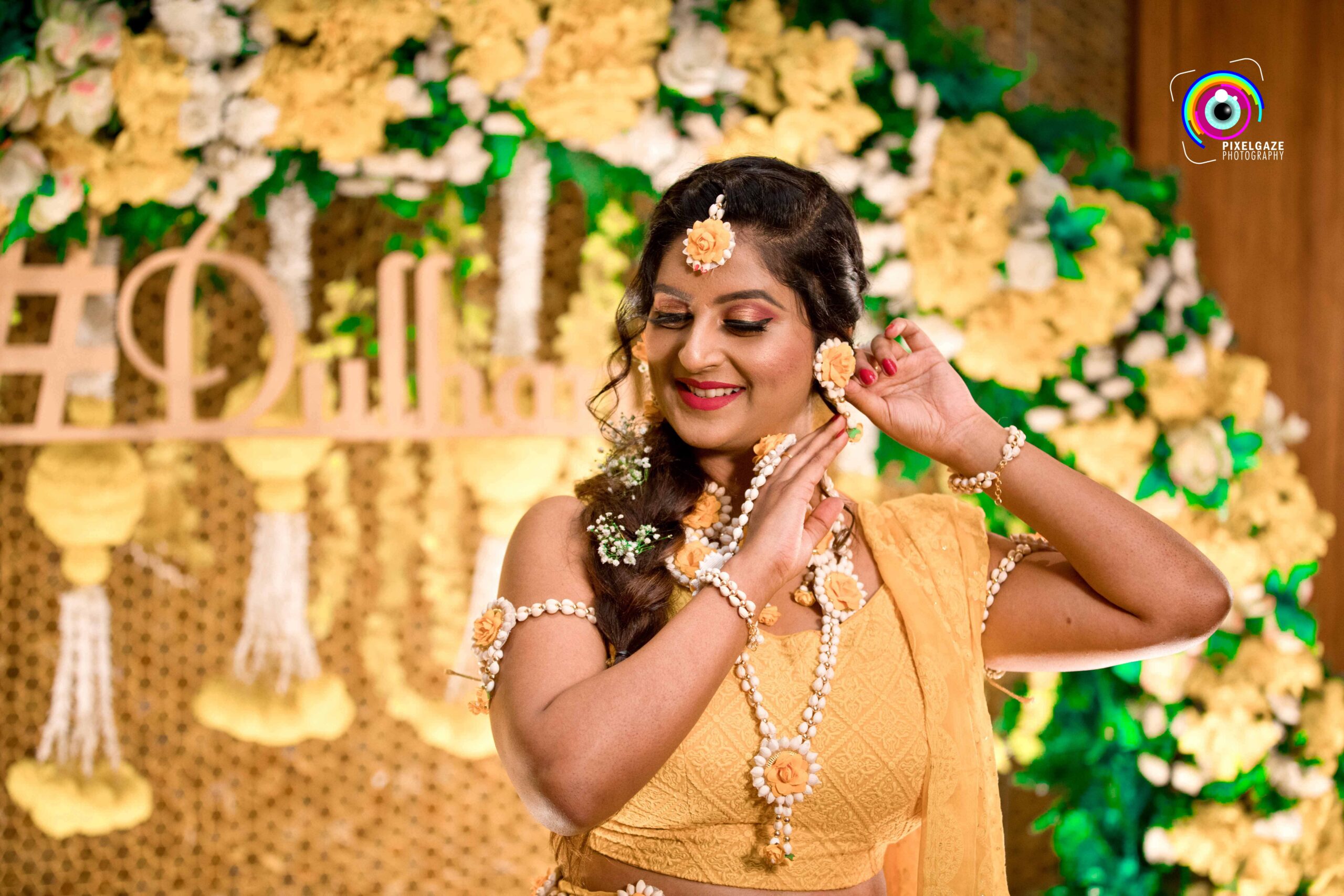 The Haldi ceremony symbolizes new beginnings, and to frame the vibrant hues of yellow, we immerse ourselves in the heart of the celebration to preserve its pristine essence.